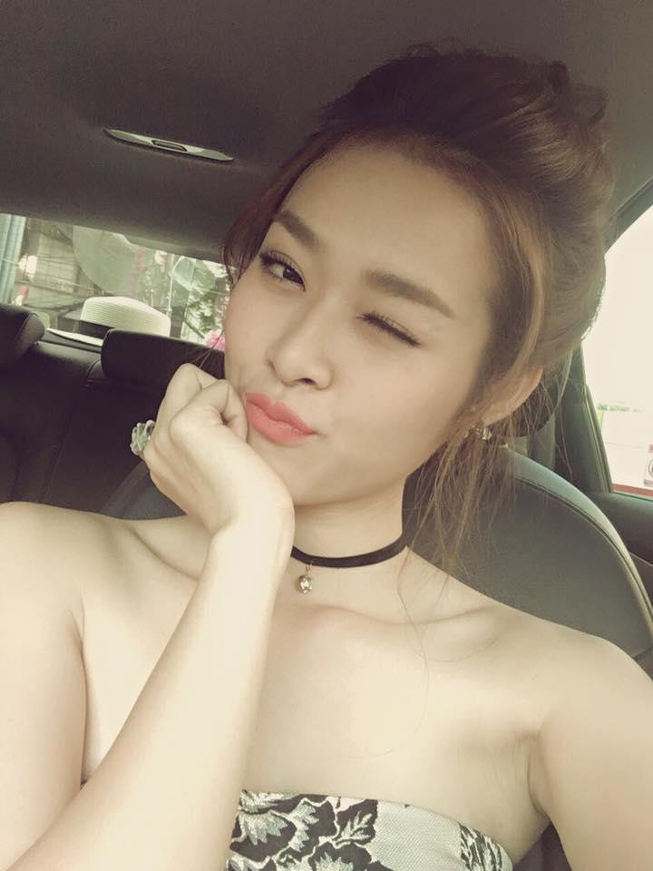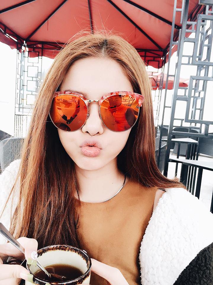 Kelly Nguyễn đăng ảnh selfie mời bạn bè cafe ngày đẹp trời.