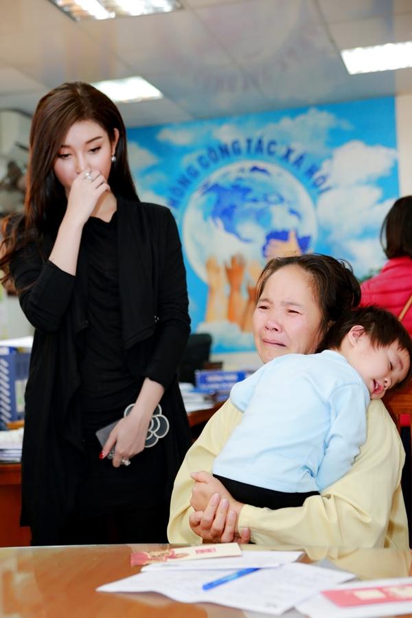 tâm sự về hoàn cảnh khó khăn của gia đình đã khiến Á hậu không ngăn được giọt nước mắt xúc động.