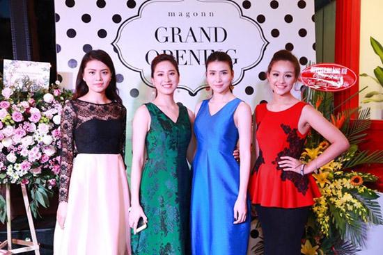 Á Hậu Huyền My và Hoa Hậu Dương Thùy Linh bên cạnh hai nhà thiết kế Tú Ngô và Nguyễn Minh Phúc chủ thương hiệu Magonn.