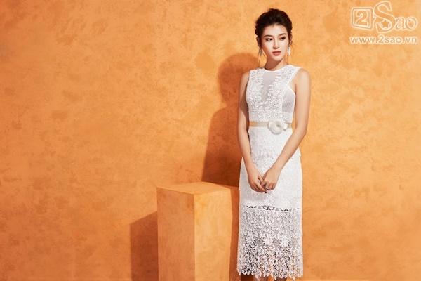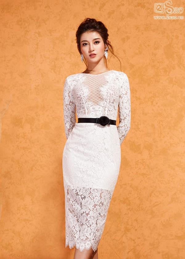 Á hậu theo đuổi phong cách gợi cảm lãng mạn với những chiếc đầm tôn dáng và sáng da. Đầm ren ôm sát sử dụng chất liệu ren cotton có độ co giãn, thoáng, mềm…