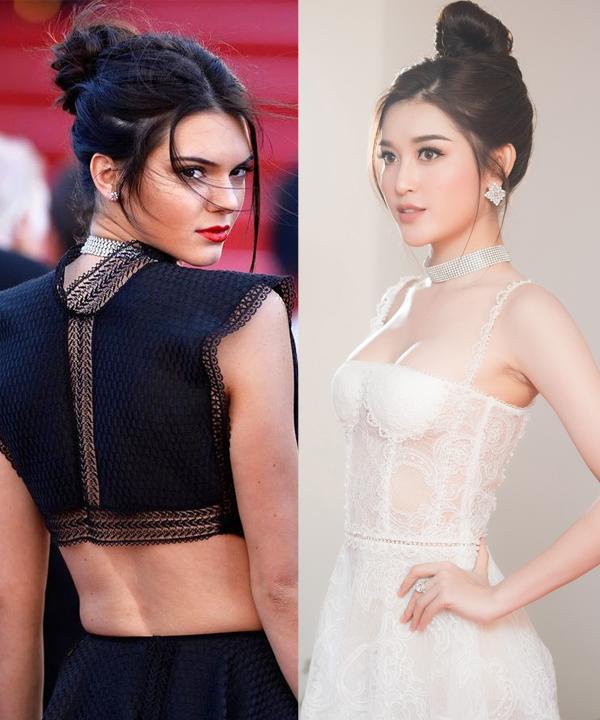 Tại sự kiện, Á Hậu Huyền My gây chú ý đặc biệt không chỉ ngoài bộ cánh lộng lẫy mà cô còn để kiểu tóc búi cao buông lơi phần mái. Có thể dễ dàng nhận thấy đây cách để tóc của fashionista đắt giá nhất thế giới Kendall Jenner. Khi được hỏi về sự trùng hợp này, Á Hậu cũng không ngần ngại chia sẻ, cô rất hâm mộ các fashionista thế giới tuy nhiên lần lựa chọn kiểu tóc này lại là quyết định từ stylist và chuyên viên làm tóc riêng. Huyền My cũng cho rằng, quan trọng là phù hợp với hình ảnh dù học hỏi từ ai đi chăng nữa.