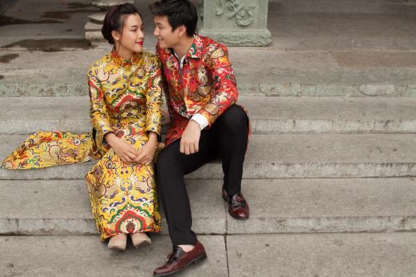 Huỳnh Anh cho biết, quen nhau đã hơn 2 năm nhưng đây là lần đầu tiên hai người mới cùng thực hiện bộ ảnh áo dài đón xuân. Nam diễn viên cũng hào hứng tiết lộ luôn có cảm giác an yên, hạnh phúc mỗi dịp Tết sang. Với Huỳnh Anh ngày Tết gắn với nhiều kỷ niệm đẹp, là nỗi buồn hay niềm vui đều bắt nguồn từ ngày đầu năm mới