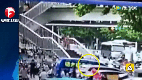 Theo những gì camera ghi lại, người phụ nữ đen đủi này đang di chuyển trên thang dành cho người đi bộ thì bất chợt bước hụt, ngã lộn nhào vài vòng rồi nằm bất tỉnh trên vỉa hè. Một nhân chứng ở đó cho hay: "Do mải nhìn điện thoại, mà cô gái này đã ngã cầu thang, đập đầu xuống đất bất tỉnh".