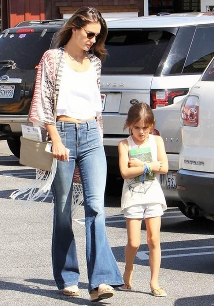 Alessandra Ambrosio xuống phố với mốt áo kimono kết hợp áo crop top và quần jeans.