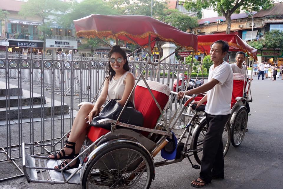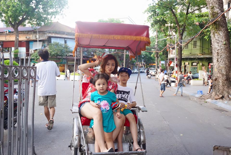 Nhân dịp này, Jennifer Phạm đã đưa em gái và hai con đi xích lô
