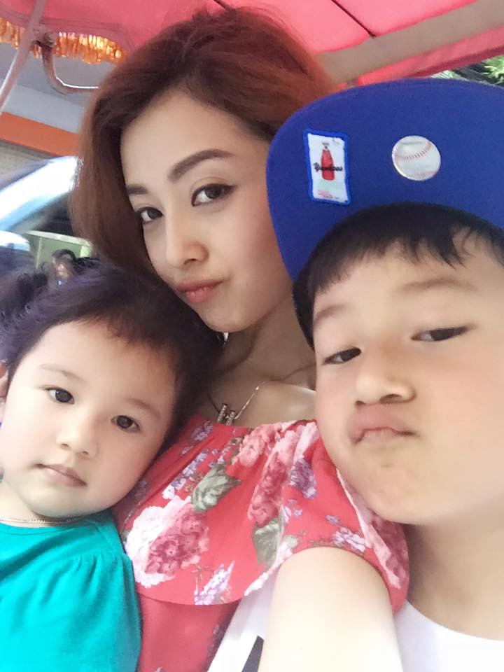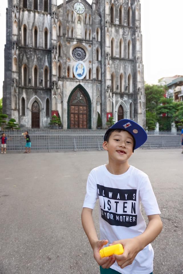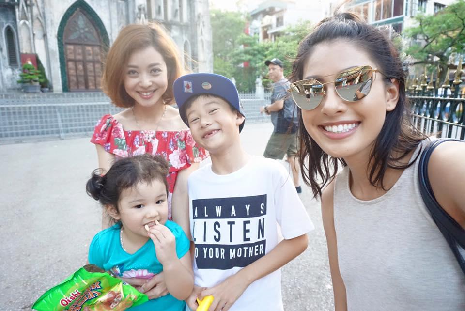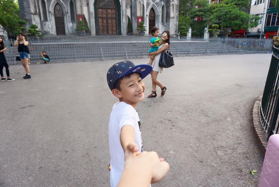 Ba mẹ con Jennifer Phạm hào hứng selfie cùng nhau khi đi dạo phố thủ đô