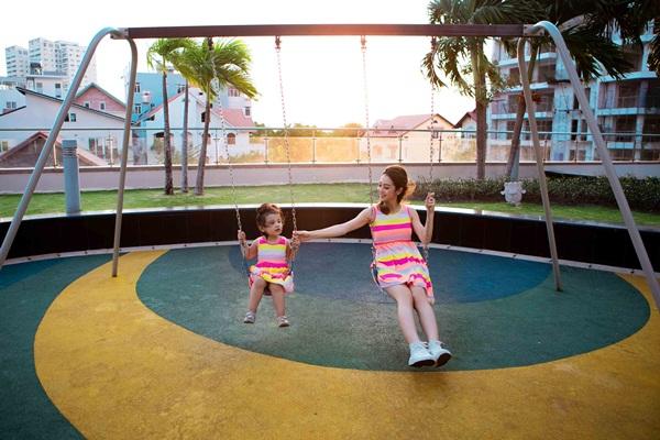 này đưa con trai cùng mọi người đi du lịch nghỉ dưỡng.