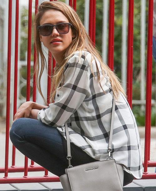 Jessica Alba cởi áo khoác ngoài và vô tình cô đã để lộ bầu ngực tròn trịa