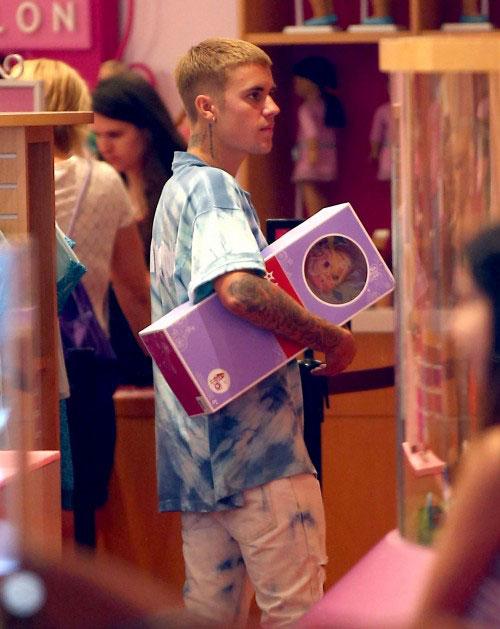 Bieber vác đồ và kiên nhẫn đứng đợi trong khi Jazmyn mải mê chọn lựa.