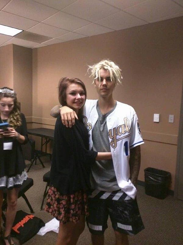 Một khán giả may mắn chụp chung cùng Justin Bieber trong hậu trường đêm diễn