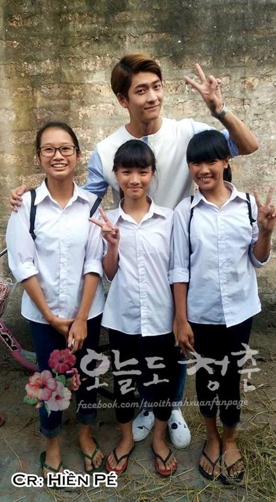 Nam diễn viên xứ Hàn thân thiệt chụp ảnh cùng các diễn viên nhí.