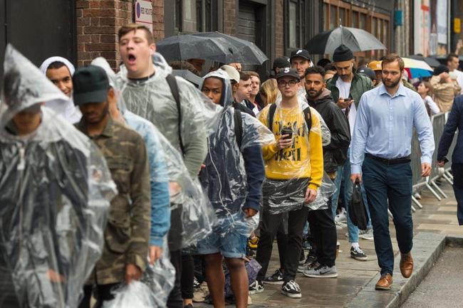 Các tín đồ thời trang không ngại mưa gió xếp hàng chờ vào mua BST Pablo