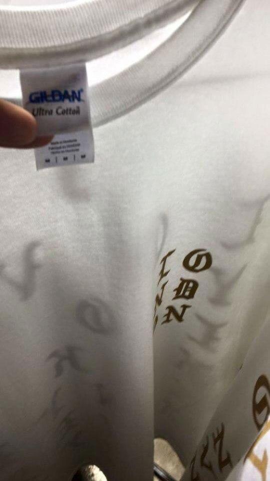 Và vì sao họ lại có thể phát hiện ra điều "động trời" này? Đó là vì chiếc mác in chữ Gildan vẫn còn lù lù ở trên cổ áo. Có vẻ như tất cả những gì phía Kanye West phải làm là mua áo giá rẻ về, in chữ lên và ung dung bán với giá gấp vài chục lần.