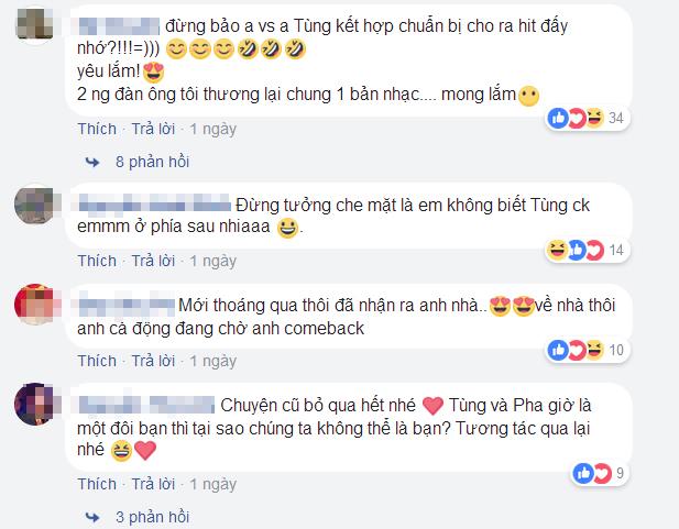 Không chỉ bỏ qua chuyện cũ, các Sky cũng mong chờ sự hợp tác của 2 cá tính âm nhạc này trong tương lai. Dù Karik sau đó nói khéo mình và đồng nghiệp chỉ bàn chuyện cuộc sống, không nói chuyện âm nhạc, thì cũng không thể dịp tắt được hy vọng của các fan. Bởi lẽ ngay từ khi đăng status, chính nam Rapper đình đám đã viết là 2 người đã bàn chuyện âm nhạc cùng nhau.