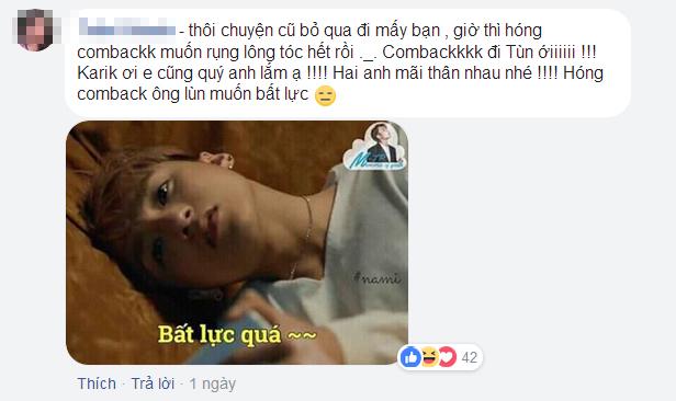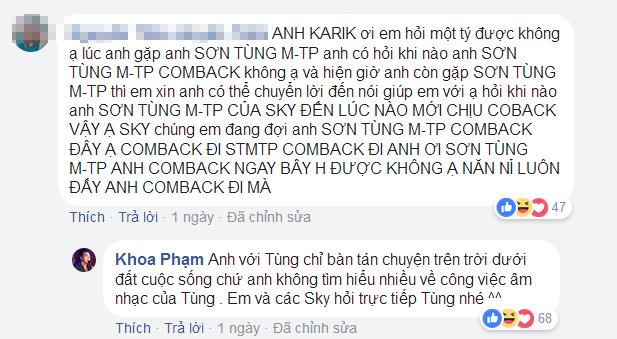 'Tập đoàn Sky' hầu hết đồng tình với lời xin lỗi của Karik. Nhưng dù bức ảnh được chủ nhân đăng trên trang cá nhân Karik, Sky vẫn rần rần vào hỏi thăm 'boss' của mình bao giờ comeback. Phải chăng, bởi sự vắng mặt quá lâu của giọng ca Lạc trôi trên thị trường âm nhạc đã khiến các Sky sốt ruột.