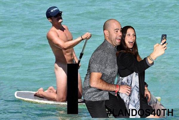 Bạn bè của Orlando và Katy đua nhau tạo dáng chụp ảnh tự sướng bên cạnh ảnh khỏa thân của nam tài tử.