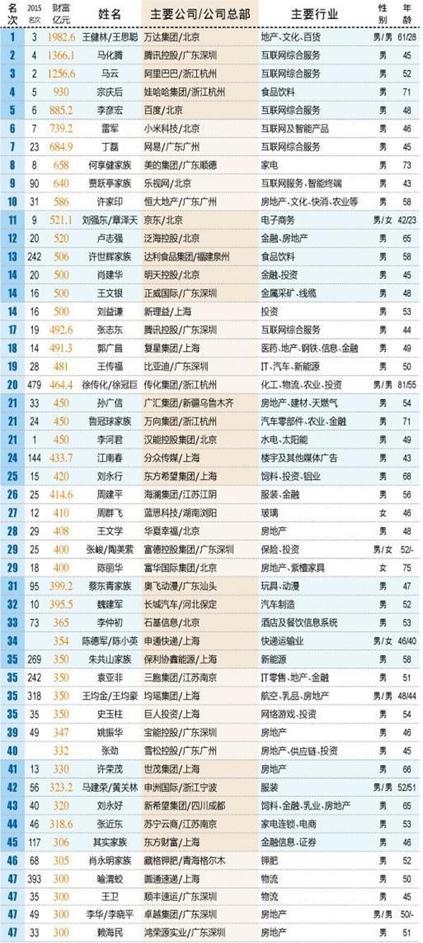 Vừa qua, Sina đã công bố bảng xếp hạng 500 người giàu nhất Trung Quốc năm 2016, theo đó, đứng đầu bảng xếp hạng chính là thiếu gia đầy tai tiếng Vương Tư Thông cùng cha là Vương Kiện Lâm với khối tài sản khổng lồ lên tới 191,9 tỉ NDT. Vương Kiện Lâm và Vương Tư Thông đã tăng 2 bậc so với năm 2015, đứng trên cả ông trùm Alibaba Jack Ma.