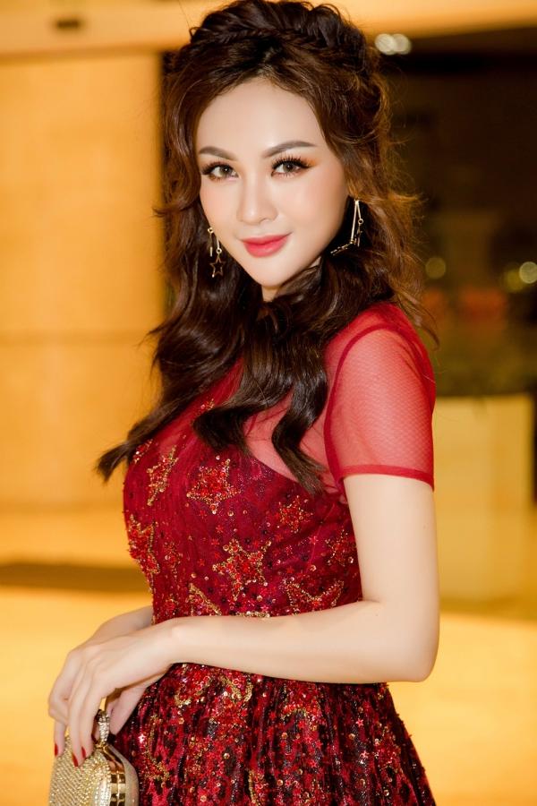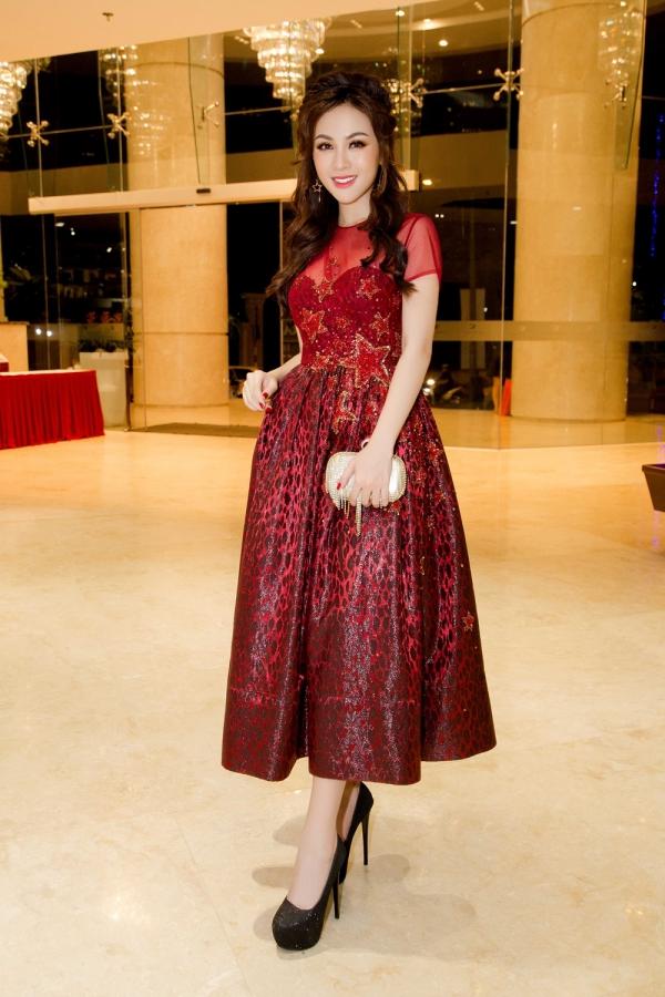 Kelly chọn chiếc váy ren đỏ nổi bật trong sự kiện. Cô hot girl xinh đẹp luôn hút mọi ánh nhìn