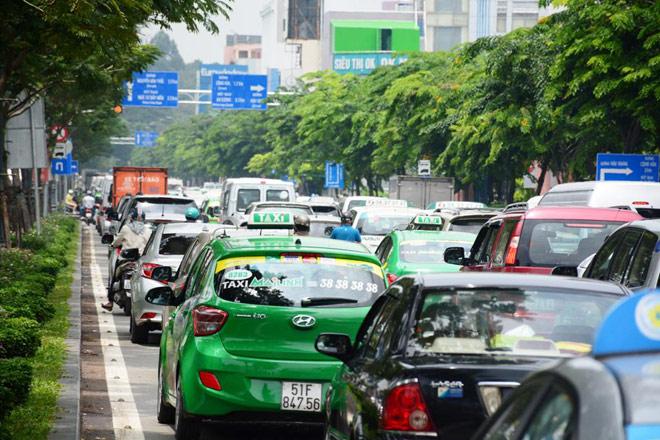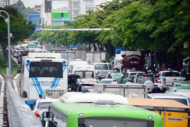 Tại khu vực đường Trường Sơn, quận Tân Bình (khu vực trước cổng ra vào sân bay Tân Sơn Nhất), giao thông tê liệt theo cả hai hướng.