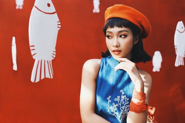 Trong bộ ảnh đón Tết mới nhất của mình, Khả Ngân gây bất ngờ khi để tóc ngắn, diện đầm xanh thướt tha vừa dịu dàng nữ tính nhưng vẫn đầy cá tính nổi bật của cô nàng.