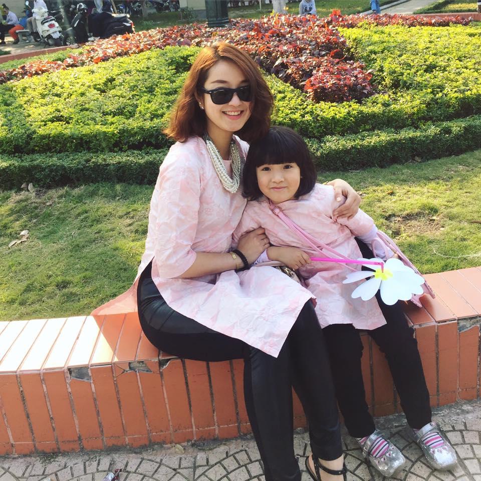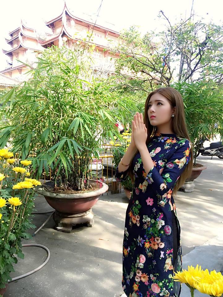 Kỳ Hân diện áo dài đi chùa ngày đầu năm.