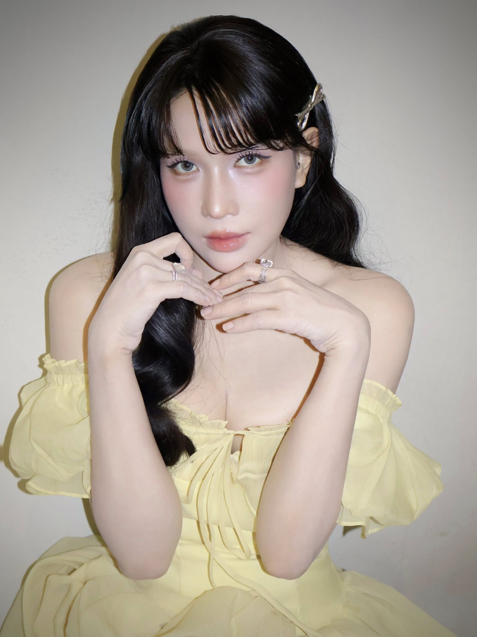 Theo đó, người đẹp có động thái phủ nhận tin đồn. Khả Như xuất hiện xinh đẹp khi diện chiếc đầm vàng trễ vai tôn khéo vòng 1 lấp ló.