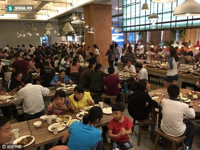 Người đi ăn miễn phí tề tựu đầy trong nhà hàng.