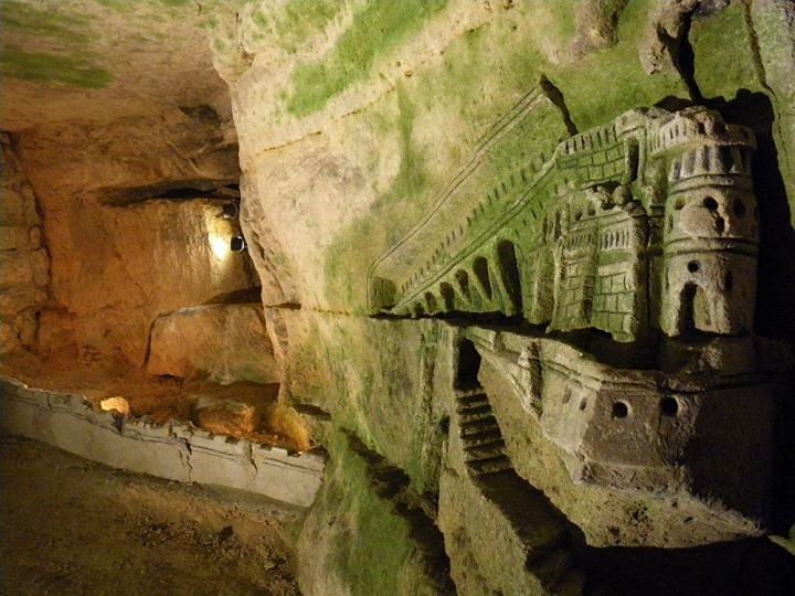Nhiều công trình điêu khắc như các nhà thờ nhỏ bên trong hầm mộ