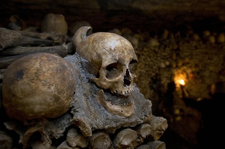 Những bộ xương được chất đầy bên trong Hầm mộ Paris
