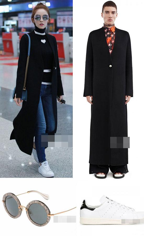 chiếc áo choàng dáng dài. Áo của hiệu Acne Studios, túi Chanel,