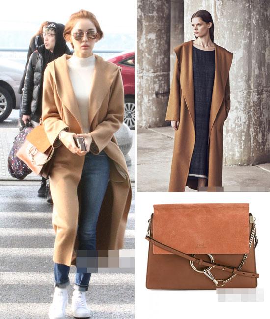 Áo khoác hiệu The Row màu be đồng điệu với túi Chloe.