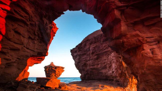 Du khách có thể chiêm ngưỡng cấu trúc đá ấn tượng Thunder Cove tại thị trấn Darnley trên đảo Prince Edward.