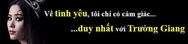 Giọng ca sinh năm 1996 cho biết Trường Giang mất mẹ từ sớm còn cô mất ba nên sự gắn kết của cả hai khá bền chặt: "Anh Giang chưa nói điều gì tôi đã hiểu anh ấy muốn gì và tôi cũng vậy. Tình cảm tôi đặt cho anh ấy quá nhiều nên để thoát xác ra khỏi đó là điều rất khó khăn với tôi. Bây giờ tôi cũng không dám nghĩ tới vì thấy mình thực sự rất quá đáng".
