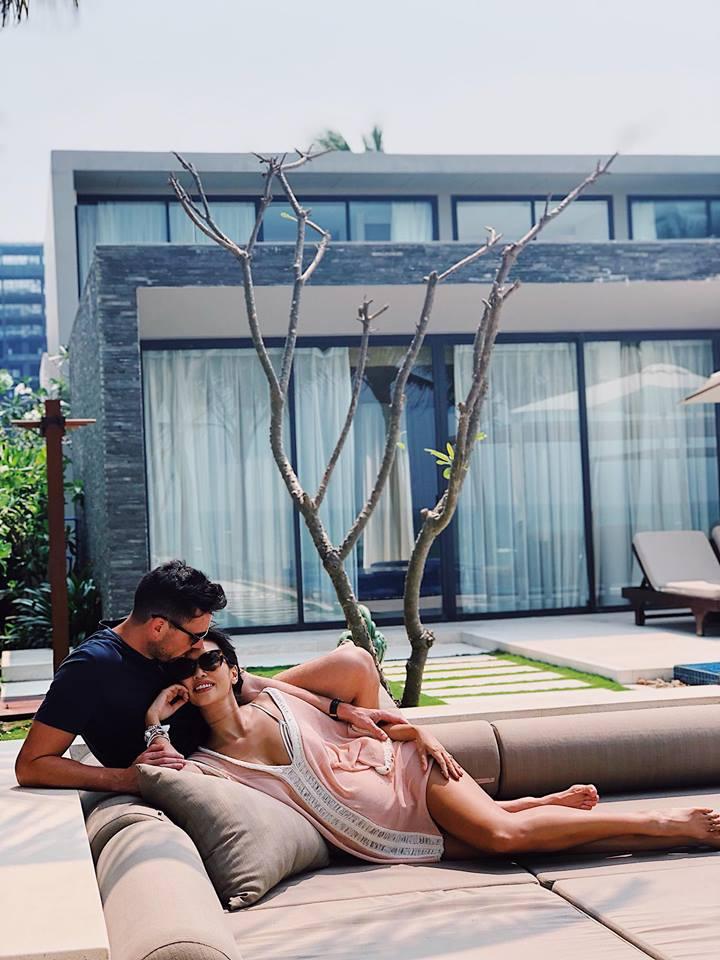 Nói rõ hơn về đời sống bà bầu, chân dài họ Vũ kể: "Thứ nhất đi du lịch là cả 2 cùng đi chứ nào phải chồng 'đưa' đi! Thứ hai, nàng bầu này năng động bỏ xừ, đi lại xăng xái, phút chót còn làm việc, còn đi chợ, nấu ăn các thứ.