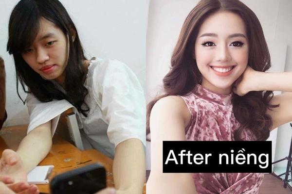 Khánh Linh trước và sau khi làm phẫu thuật thẩm mỹ.