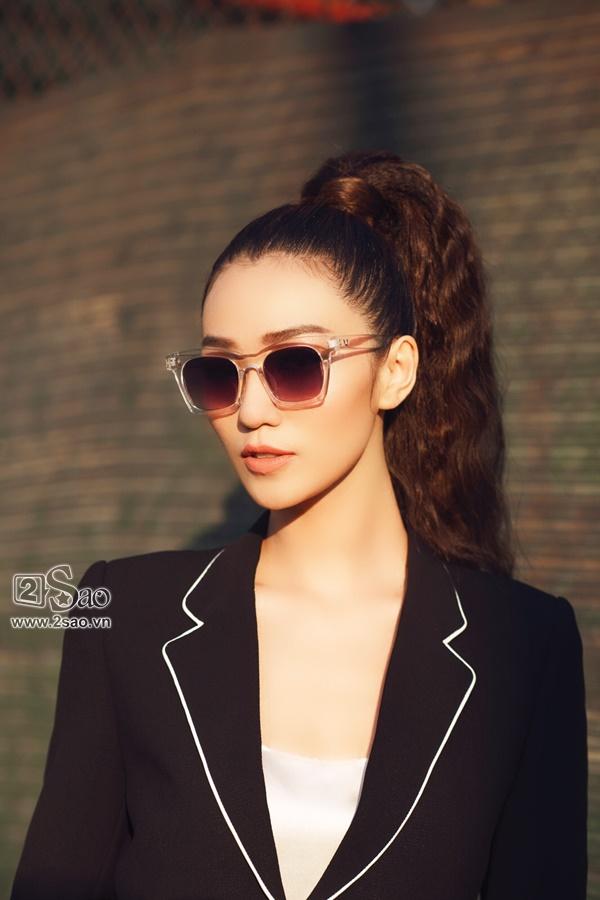 Trang phục trong bộ ảnh của Khánh My được mix với hai tông màu đen - trắng, kết hợp các kiểu phụ kiện như turban vải, kính mắt mèo, tạo nên sự hòa hợp giữa tinh thần cổ điển và hiện đại, gợi nhớ đến những bộ ảnh thời trang thể thao thịnh hành những năm 30-40.