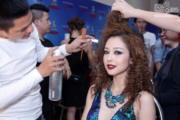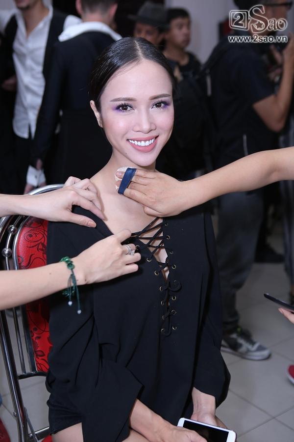 Dù đang được trang điểm nhưng khi thấy ống kính, Vũ Ngọc Anh nhanh nhạy