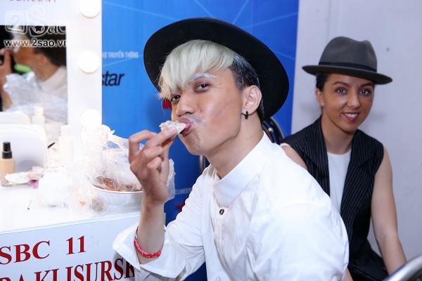 Nam ca sỹ vào tận bên trong hậu trường hỏi thăm, động viên cũng như phụ giúp