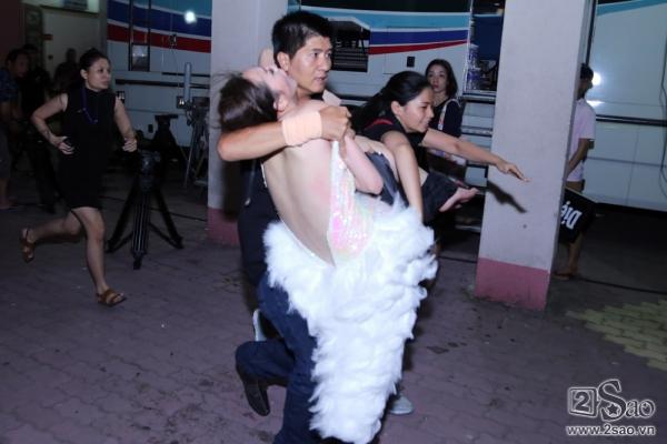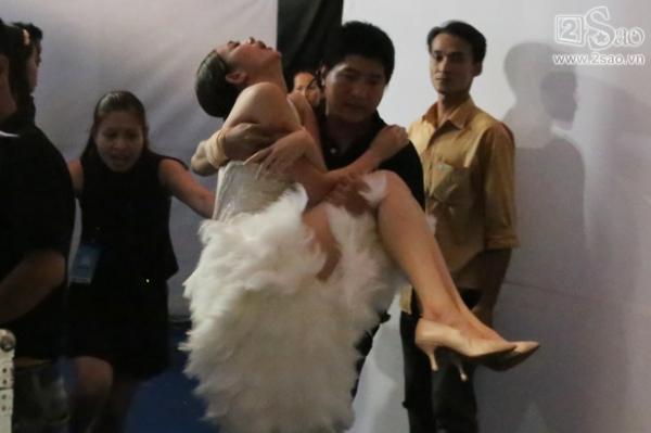 ban tổ chức phải tức tốc bế cô ra xe để nhập viện.