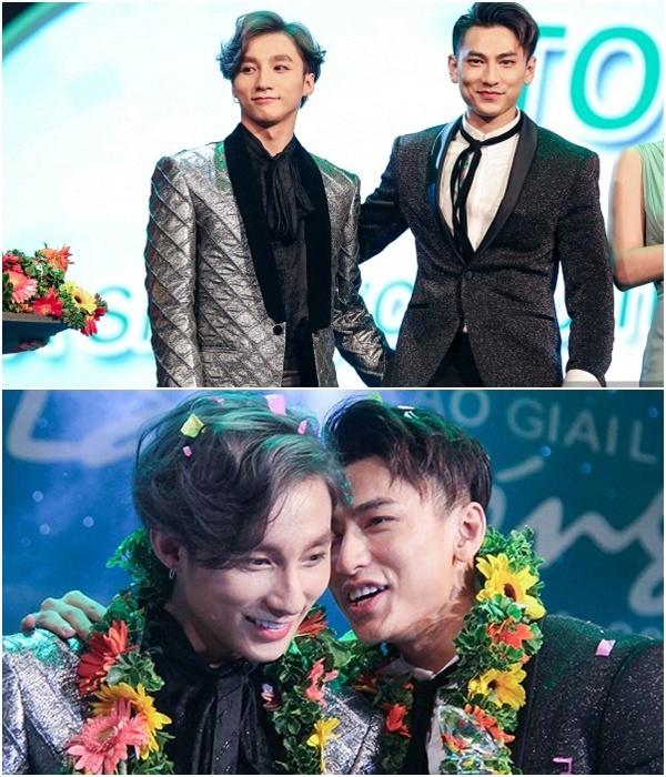 Giọng ca "Chưa bao giờ" thích thú thơm má, ôm và tựa đầu nũng nịu đàn em.