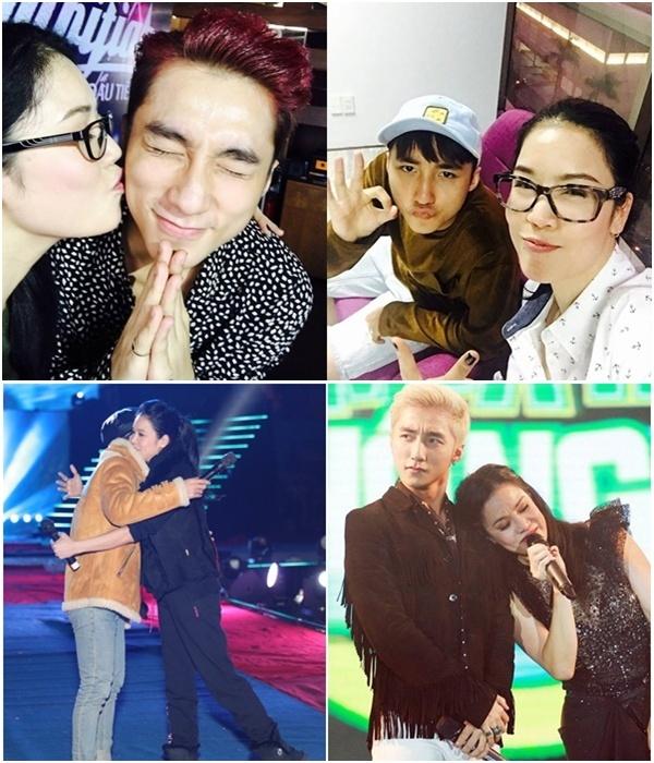 Gặp Sơn Tùng trong một buổi tổng duyệt, Thu Minh tươi cười tám chuyện với đàn em dù trước đó chưa gặp gỡ bao giờ.