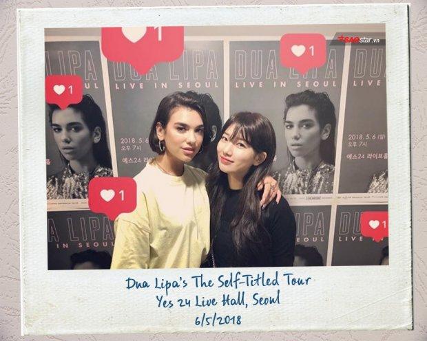 Trong khuôn khổ chuyến lưu diễn đầu tiên đến xứ sở kim chi, Dua Lipa đã có khoảnh khắc chụp chung vô cùng thú vị với Suzy cùng 2 thành viên của Black Pink: Jennie và Lisa. Trong khi Suzy ngọt ngào như một viên kẹo xứng với danh hiệu “tình đầu quốc dân”, đứng một mình bẽn lẽn và khép nép bên một cô nàng Dua Lipa cá tính và nổi loạn…