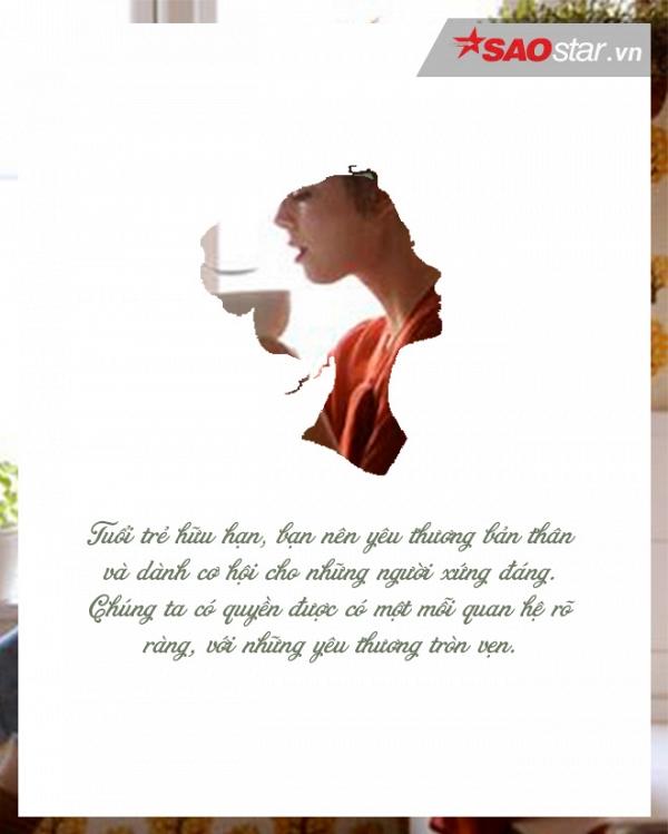 Trịnh Công Sơn có một câu “Lúc còn trẻ, chúng ta từ bỏ, cho rằng đó chỉ là một cuộc tình, nhưng cuối cùng mới biết đó thực ra là cả một cuộc đời.” Nếu chúng ta chưa từng thử, làm sao biết chắc rằng tình yêu ấy là sai lầm, làm sao biết chúng ta đã yêu sai người hay sai cách? Nhưng đôi khi, bạn sẵn sàng cho bản thân cơ hội, nhưng người đó lại không đủ sẵn sàng.