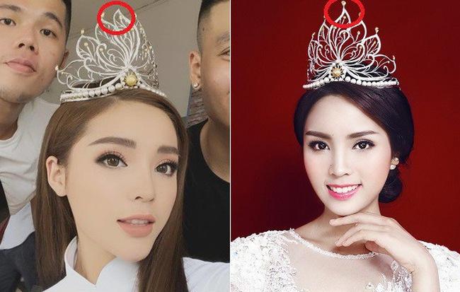 Trong một bức ảnh khác mà người đẹp chia sẻ, có thể thấy rõ viên ngọc trai trên đỉnh của vương miện đã bị mất.