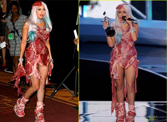 Sở thích diện những bộ trang phục quái đản của Lady Gaga dường như chưa bao giờ kết thúc và thậm chí bộ sưu tập đó ngày càng kinh và dị hơn. Mỗi lần xuất hiện là một lần fan lại giật mình trước những bộ trang phục chẳng giống ai của nữ ca sĩ. Thậm chí, có lần nữ ca sĩ còn khiến nhiều người yếu tim sợ hãi trước bộ trang phục thịt sống.
