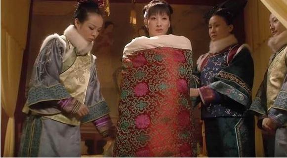 Cung phi may mắn được Hoàng đế lựa chọn sẽ phải chuẩn bị tắm rửa, trang điểm kỹ càng, sau đó khỏa thân và được cuốn trong chăn. (Ảnh: phim Hậu cung Chân Hoàn truyện).