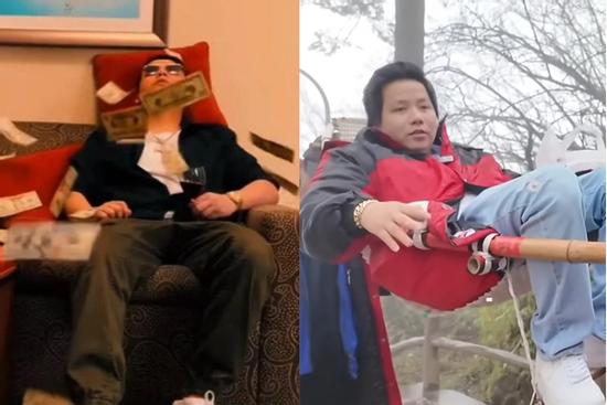 Hình ảnh "phú ông" 32 tuổi nằm vắt vẻo trên võng, còn hai người phu khuân vác già khiêng lên những bậc thang dốc khiến nhiều người bất giác "hoài nghi nhân sinh".