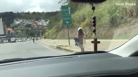 Julio Sales, một lái xe ở khu vực đó đã ngỏ ý muốn giúp đỡ cô gái, nhưng cô gái này nhất quyết ngó lơ sự trợ giúp từ người lạ mà tiếp tục di chuyển trong tình trạng "như nhộng", đầu bịt kín bằng chiếc váy.