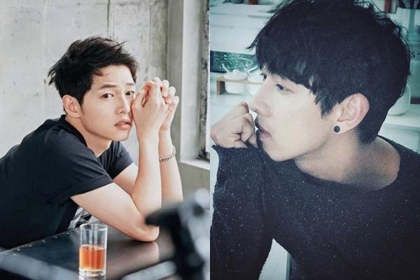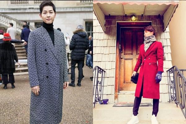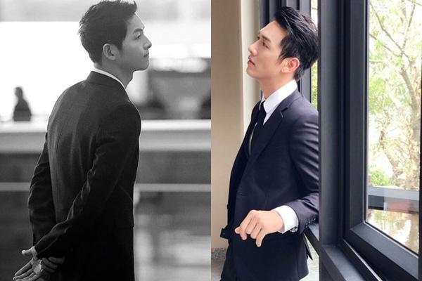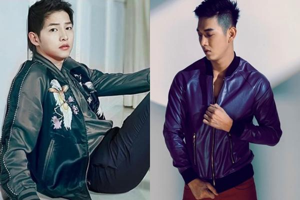 Khi chọn vest màu nóng, Song Joong Ki lại chọn chất liệu nhung còn Song Luân là chất liệu bóng