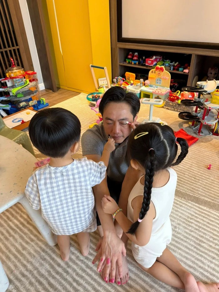 Khoảnh khắc vị doanh nhân ngồi im để chiều theo sở thích của các con như trang điểm, sơn móng tay, móng chân lập tức gây sốt. Hình ảnh khiến người hâm mộ thích thú trước tình cảm, sự gần gũi của Cường Đô La dành cho các con.